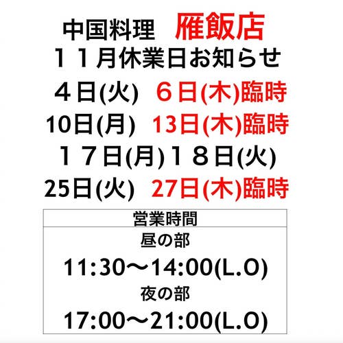 | 定休日 | 毎週月曜日 店休日はお店に確認